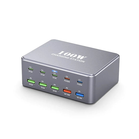 100W Universal Multi USB Type C Charger 10 Port USB QC3.0 PD Charging Station For Ipad Iphone 16 15 14 13 Pro Max Samsung Tablet